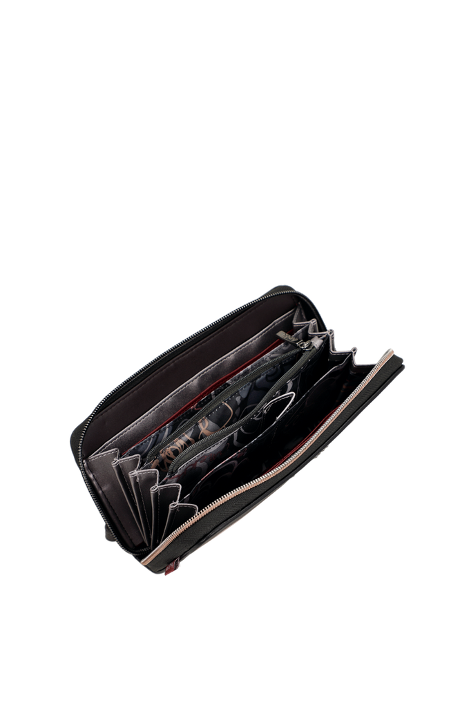 Compartiments : Plusieurs emplacements pour cartes, pochette pour monnaie zippée et compartiment pour billets ou documents.