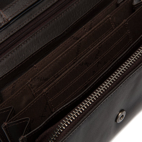 Compartiments : Plusieurs emplacements pour cartes, poche pour billets et section zippée pour la monnaie à 3 compartiments.