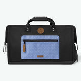 Sac de voyage Cabaïa, disposant d'une très grande ouverture à la façon des sacs diligence pour vous permettre de ranger vos vêtements facilement, vendu avec 2 pochettes interchangeables, poche à chaussures, poche à linge sale, poche à livre, poche à lunettes, pochette matelassée pouvant accueillir une tablette, bandoulière matelassée anti-transpirante, en toile de nylon 900D, certifié vegan. L'astuce unique de ce sac: des bretelles cachées dans la doublure du fond pour le porter en sac à dos.