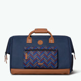 Sac de voyage Cabaïa, disposant d'une très grande ouverture à la façon des sacs diligence pour vous permettre de ranger vos vêtements facilement, vendu avec 2 pochettes interchangeables, poche à chaussures, poche à linge sale, poche à livre, poche à lunettes, pochette matelassée pouvant accueillir une tablette, bandoulière matelassée anti-transpirante, en toile de nylon 900D, certifié vegan. L'astuce unique de ce sac: des bretelles cachées dans la doublure du fond pour le porter en sac à dos.