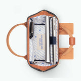 Système d'ouverture cabas, grand angle, avec à l'intérieur une poche matelassée pour protéger votre tablette ou PC 13", mousqueton de sécurité, bretelles molletonnées et anti-transpirantes, bande d'attache pour valise, vendu avec 2 pochettes interchangeables.