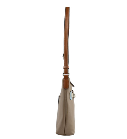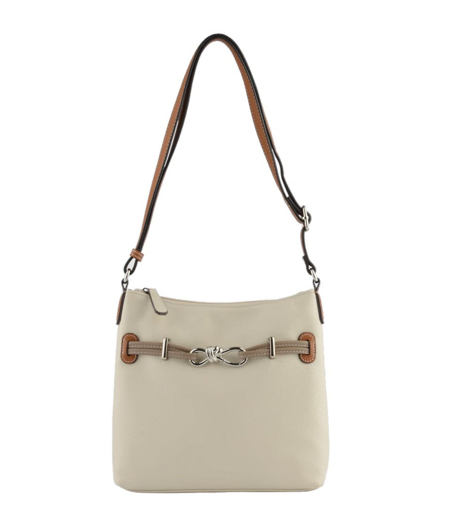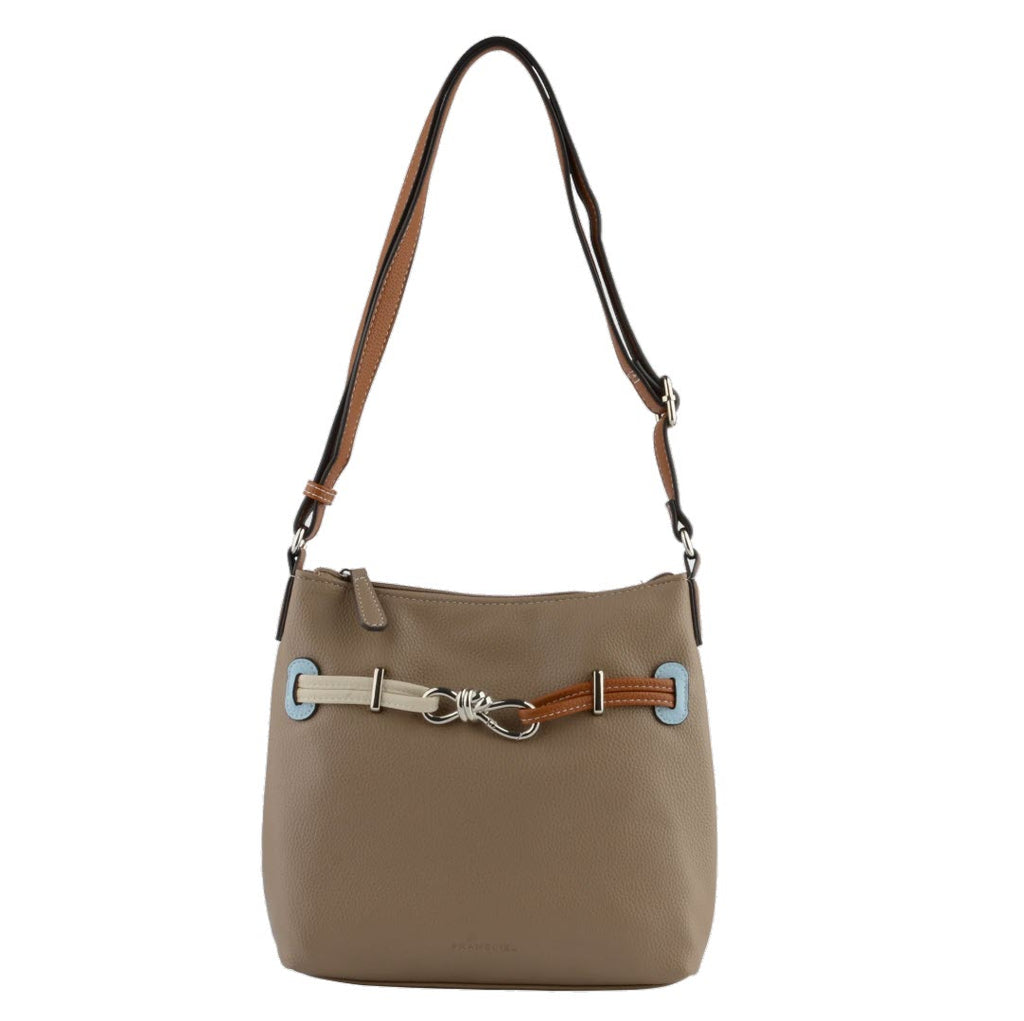 Sac à main en bandoulière Clarence, une ligne Francinel avec des associations de jolies couleurs, ce format est pratique pour ne pas vous encombrer, la taille nécessaire pour y ranger vos affaires.