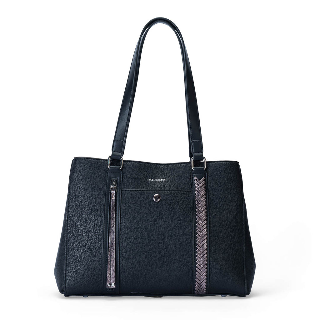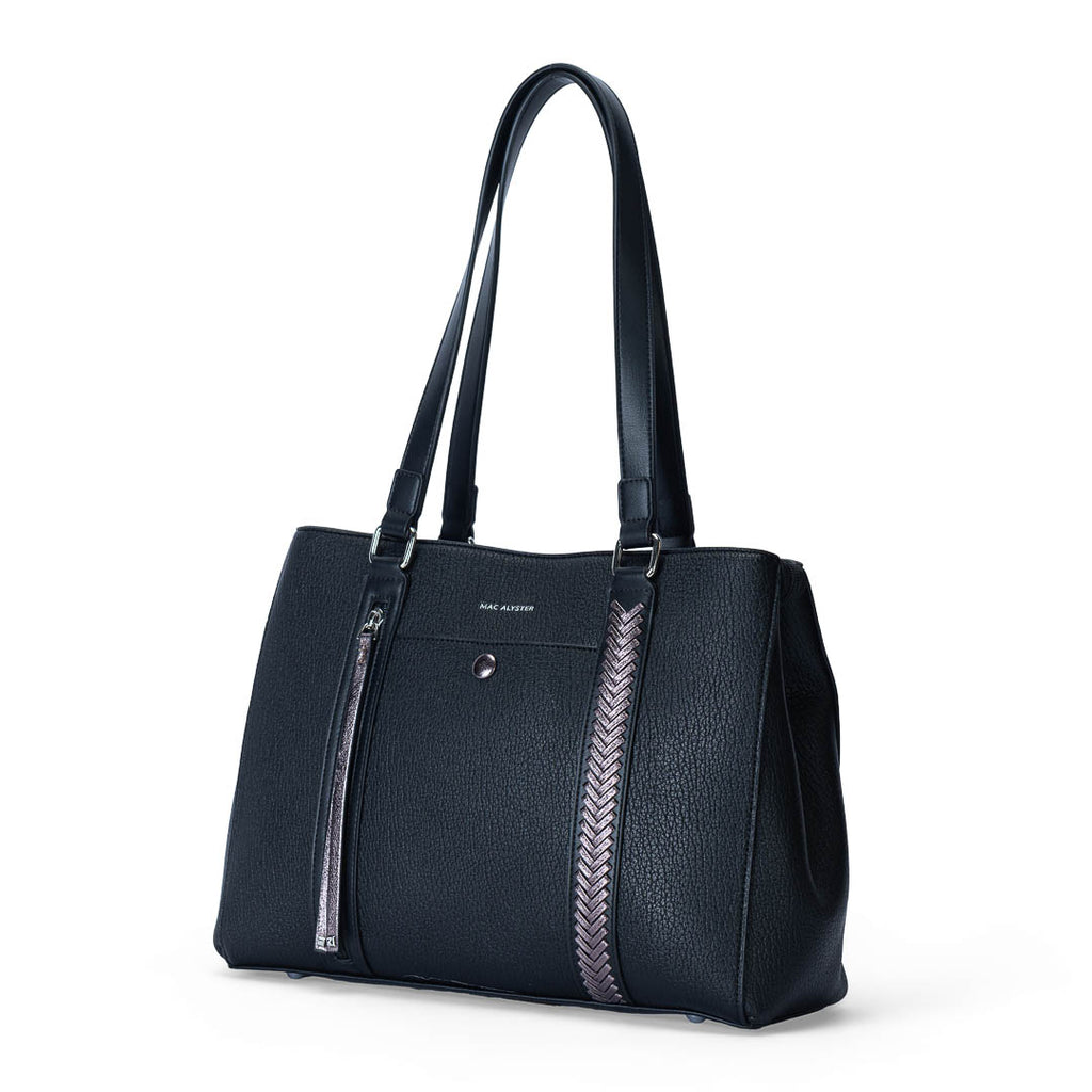 Le sac à main Mac Alyster de la collection Contraste allie élégance contemporaine et fonctionnalité du quotidien. Confectionné en matière synthétique texturée avec des effets contrastés, il attire le regard tout en restant facile à vivre. Son allure structurée s’accorde parfaitement à une tenue casual chic comme à un style plus sophistiqué, pour le bureau ou une sortie en ville.